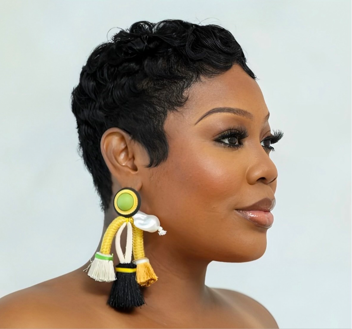 These stunning statement earrings are the perfect accessory to elevate any summer or spring outfit. Crafted with delicate yet vibrant details.
